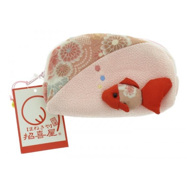 Très jolie trousse en Chirimen, avec fermeture-éclair et grelot, et surtout un adorable petit poisson - la fameuse carpe japonaise.