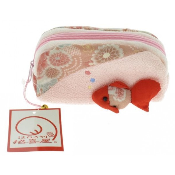 Trousse en chirimen, rose avec une carpe rouge : charmant et pratique